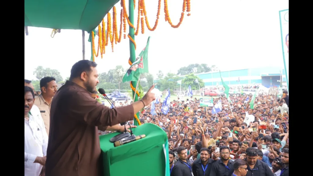 Tejashwi Yadav: बिहार विधानसभा चुनाव से पहले महागठबंधन में दरारें एक बार फिर गहरी होती दिख रही हैं। हाल ही में दिल्ली में हुई विपक्षी दलों की बैठक का कोई नतीजा नहीं निकला और कांग्रेस ने अपनी मीटिंग अलग से की। ऐसे माहौल में तेजस्वी यादव ने मुजफ्फरपुर के कांटी में आयोजित कार्यकर्ता सम्मेलन में बड़ा बयान देकर हलचल मचा दी। मंच से उन्होंने कहा- “आप सब यह समझ लीजिए कि बिहार की हर सीट पर तेजस्वी चुनाव लड़ रहा है।” इस बयान के बाद राजनीतिक गलियारों में चर्चाओं का दौर शुरू हो गया। सवाल यह उठने लगा कि क्या यह महज कार्यकर्ताओं का मनोबल बढ़ाने का तरीका है या फिर कांग्रेस पर दबाव बनाने की रणनीति। चुनावी माहौल गरम है और तेजस्वी के इस बयान ने सियासत को और ज्यादा दिलचस्प बना दिया है।
